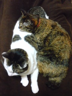 チャイは寝るとき、よくつぼみを枕にします。逆はあまり無いですね。