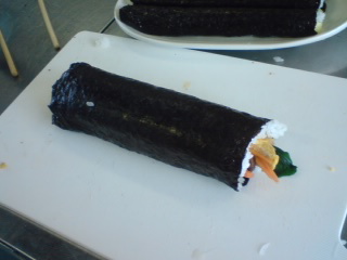 初めて太巻きを作りました。巻くのが難しいです。