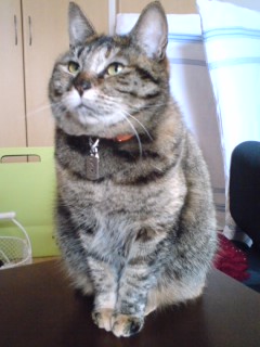 子猫の頃からずんぐりむっくりで、まるっとした身体に短い手足でこの色ですから、狸のようです。