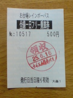 イベント後で寄る所があったので1日乗車券を買ったのですが、乗車時にその旨を伝えますと、運転手さんがバッグからレシートのような紙を出してスタンプを押しました。この手作り感(笑)