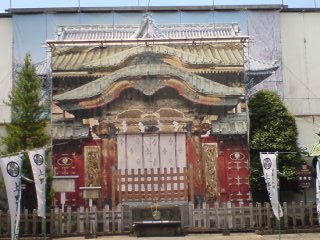違和感のある写真ですが、これは絵です。ちょうど工事中で、中を隠すように巨大な垂れ幕が掛かっています。